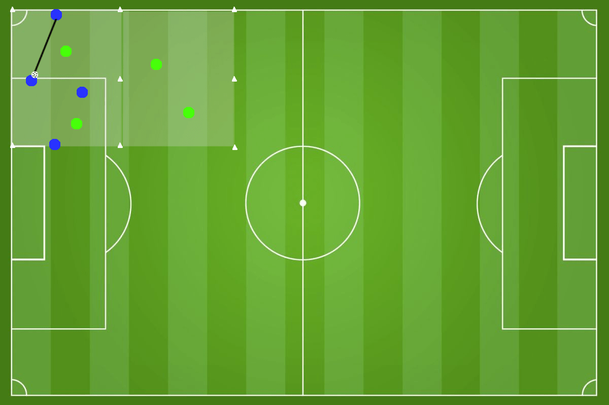 In un campo diviso in 2 settori come in figura (circa 22m x 18m ) disponiamo 2 squadre da 4 giocatori ciascuna. Il numero dei giocatori, lo spazio di gioco e la durata dell’esercizio può essere regolata in base alle esigenze dell’allenatore. Ricordiamoci che riducendo gli spazi andiamo a lavorare maggiormente sulla forza.