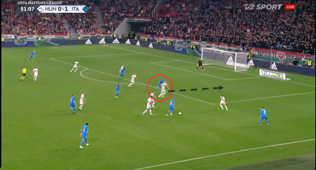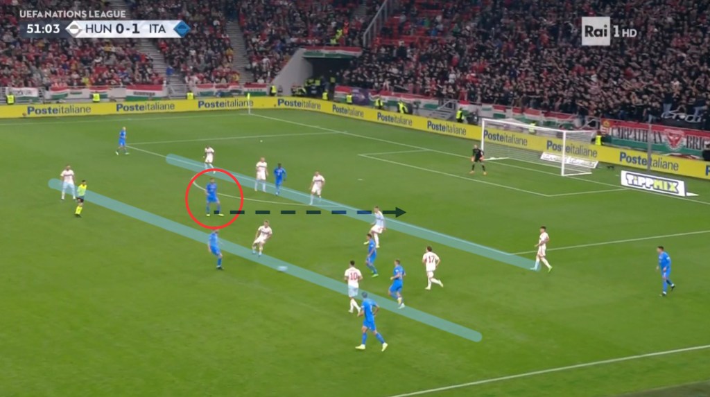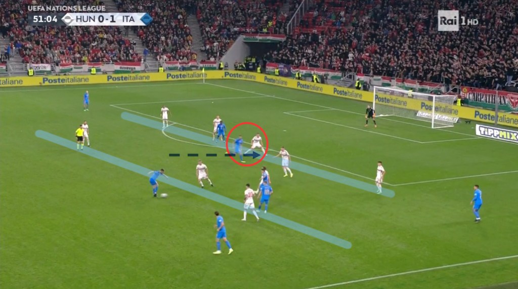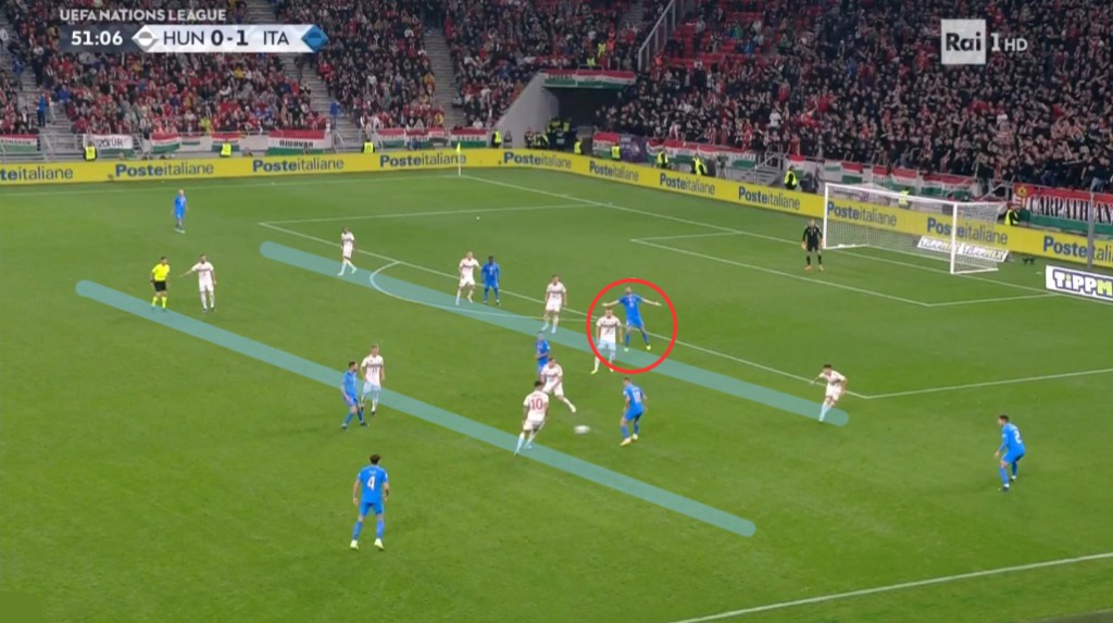 Colpisce la capacità di giocare nello stretto, alternando goal in cui riesce a perforare per vie centrali nonostante la grande densità avversaria a goal in cui la concentrazione di passaggi all’interno del campo serve ad attirare avversari e quindi liberare le corsie esterne.