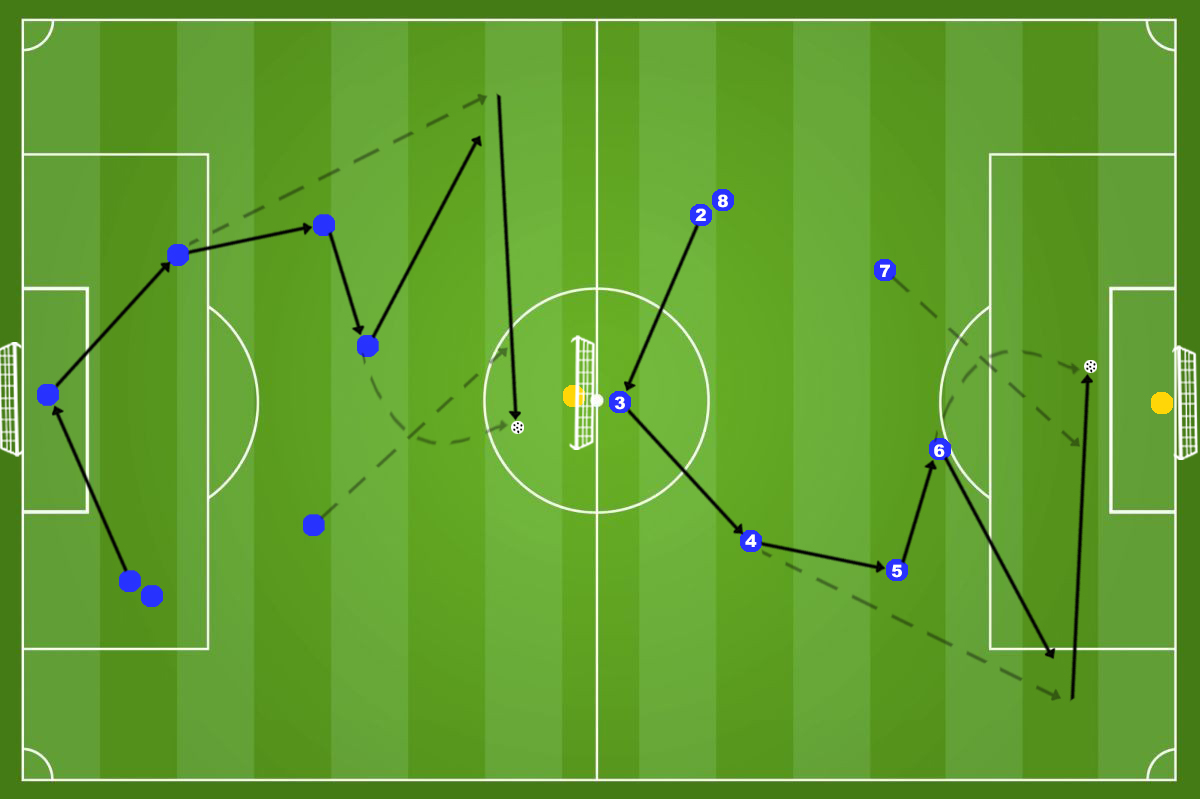 La gestione delle transizioni nel calcio è fondamentale. Questa esercitazione cerca di riproporla molte volte durante la stagione in modo da abituare i calciatori a gestire meglio tale situazione di gioco. Quando parliamo di transizioni parliamo di quel momento in cui il pallone passa dalla disponibilità di una squadra all’altra, ovviamente se perdiamo il possesso della palla parliamo di transizione negativa, se recuperiamo palla parleremo di transizione positiva. In entrambe le situazioni saper reagire e gestire il momento è fondamentale.